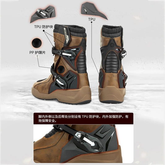 Scoyco Waterproof Leather Brown Motorcycle Boots Men Women Retro Bike Boots Anti-slip Cafe Racer Shoes Riding Protective Gear