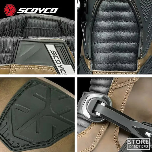 SCOYCO Motorcycle Boots Botas Moto Microfiber Leather Motocross Off-Road Racing Boots Motorbike Riding Shoes Men Moto Boots