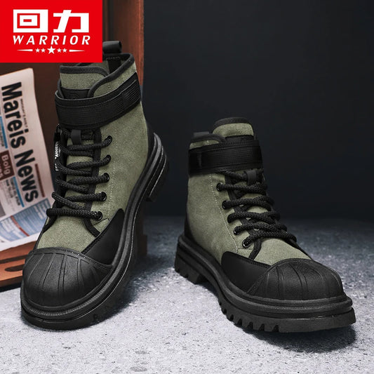 Warrior Winter Martin Boots Men Work Climbing Shoes Hiking Motorcycle Casual Shoes Shell Head Outdoor Men's High Tops Sneakers