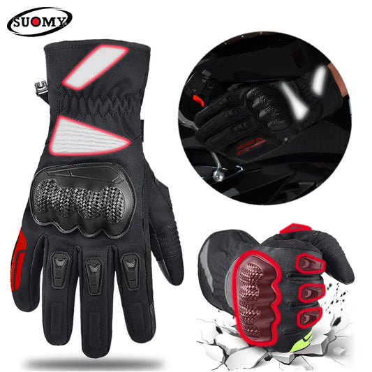 SUOMY Motorcycle Gloves Winter Warm Waterproof Motorbike Gloves Touchscreen Motocross Glove Thickened Velvet Cold-proof Guantes