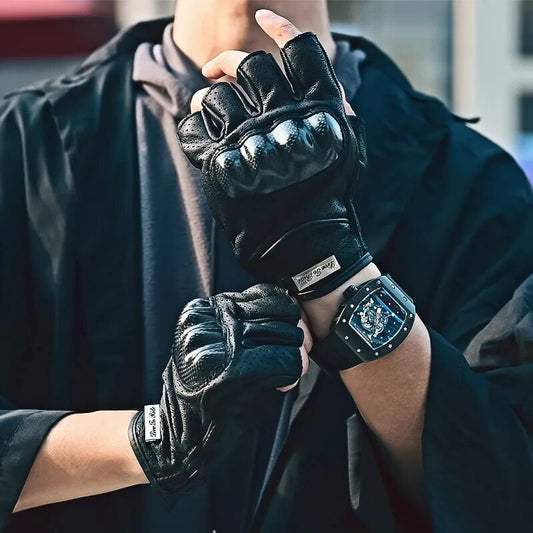 Summer Motorcycle Fingerless Gloves Accessories Goatskin Leather Half Finger Gloves Motocross Gant Moto Guantes Moto Verano