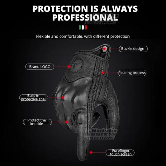 Genuine Leather Motorcycle Gloves Winter Moto Gloves Men Summer Goatskin Motorbike Touch Screen Fist Joint Protect Guantes