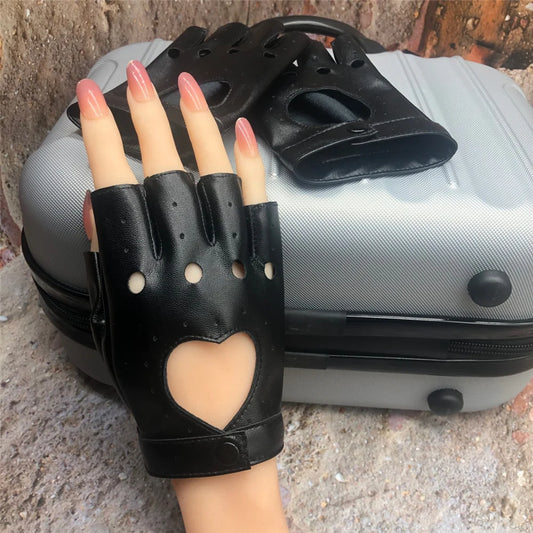 Punk Fashion Women Leather Gloves For Motorcyclist Fingerless Mittens Dance Car Driving Wrist Gloves Thin Motorcycle Accessories