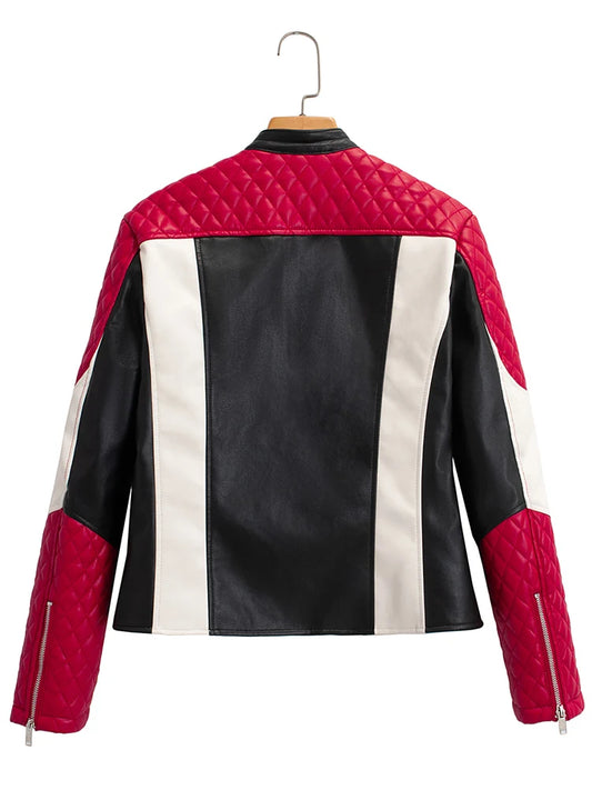 Fitaylor Autumn Winter Women Faux PU Leather Coat Casual Lady Red Motorcycle Jacket Vintage Lapel Short Biker Jacket