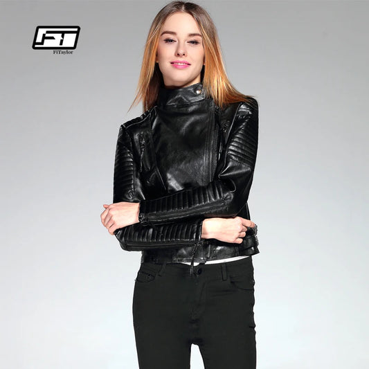 Fitaylor Autumn Women Women Faux PU Leather Jacket Casual Lady Long-sleeve Windproof Waterproof Jacket Motorcycle Streetwear