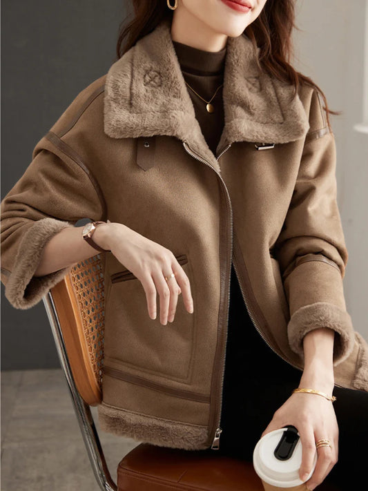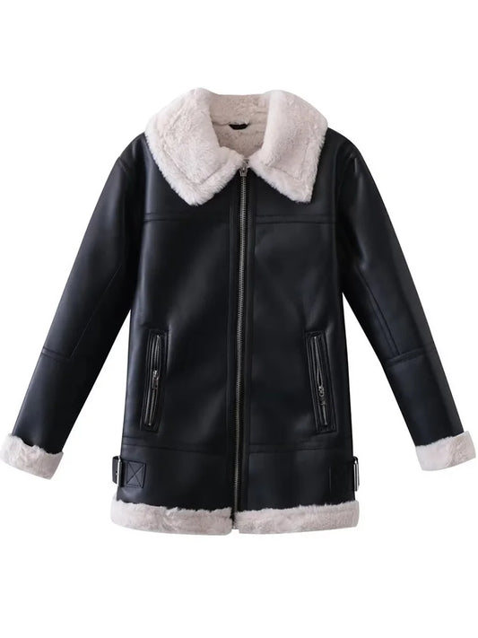 Fitaylor New Autumn Winter Women Streetwear Faux Lamb Leather Fur Jacket Lady Casual Loose Thick Warm Zipper Moto Biker Pu Coat