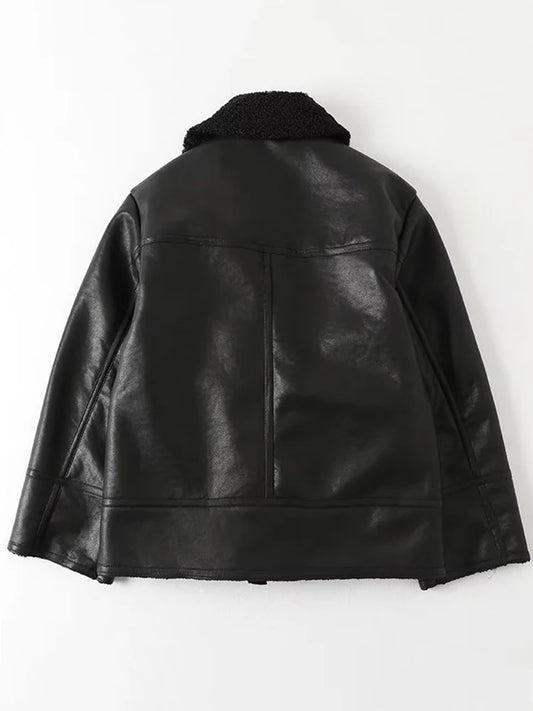Fitaylor New Autumn Winter Streetwear Thick Warm Moto Biker Coat Women Fashion Loose Lapel Faux Leather Lamb Fur Short Jacket