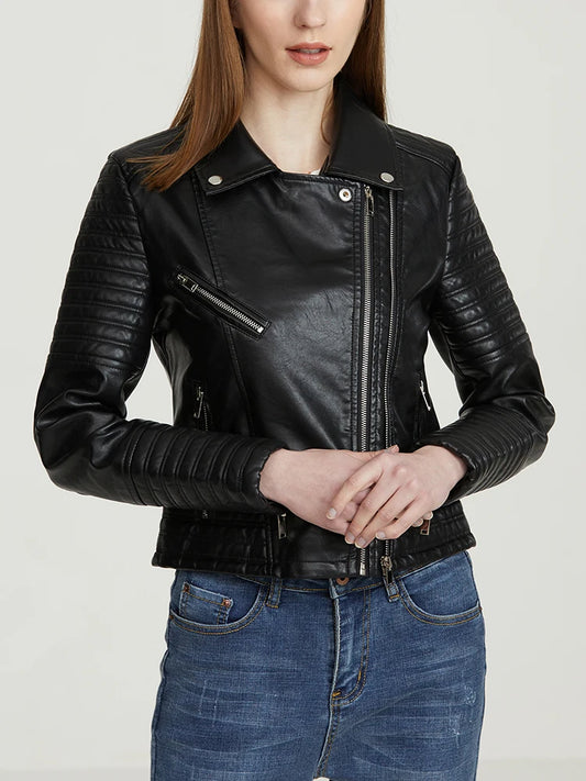 Fitaylor Autumn Women Women Faux PU Leather Jacket Casual Lady Long-sleeve Windproof Waterproof Jacket Motorcycle Streetwear