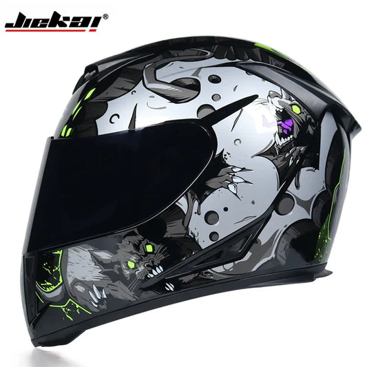 JIEKAI Motorbike Removable Lining Full Face Helmet Motorcycle Flip Up Helmet Racing Summer Winter Dual Lens Visor Motocross DOT Approved
