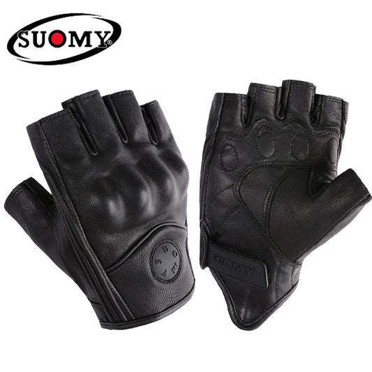 Suomy Summer Motorcycle Half Finger Gloves Hard Shell Protection Motocross Fingerless Gloves Outdoor Sport Moto Gloves Leather
