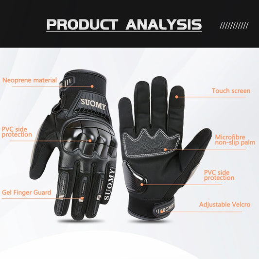 SUOMY Summer Motorcycle Gloves Non-Slip Touchscreen Motocross Glove Breathable PVC Full Knuckle Finger Protective Wear Resistant