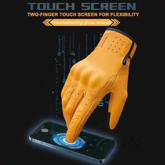 SUOMY Classic Leather Retro Motorcycle Gloves Touchscreen Motocross Gloves Full Finger Motorbike Glove Breathable Wear-resistant