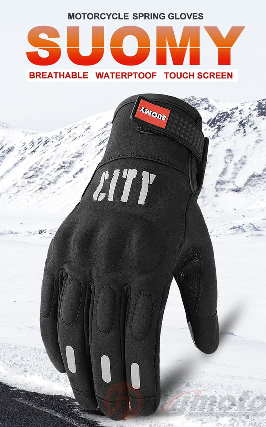 SUOMY Motorcycle Gloves Winter Warm Waterproof Motorbike Gloves Touchscreen Motocross Glove Thickened Velvet Cold-proof Guantes