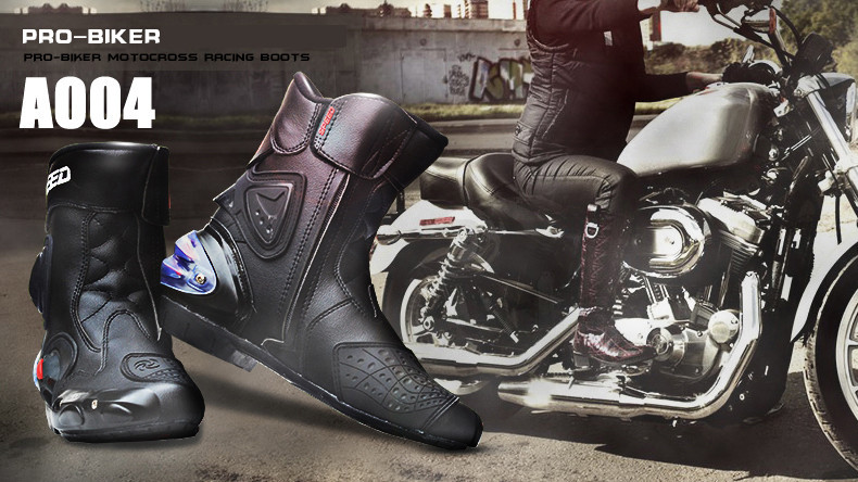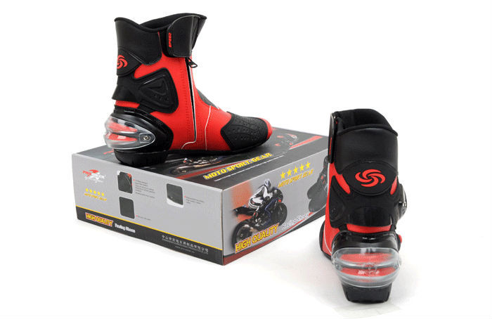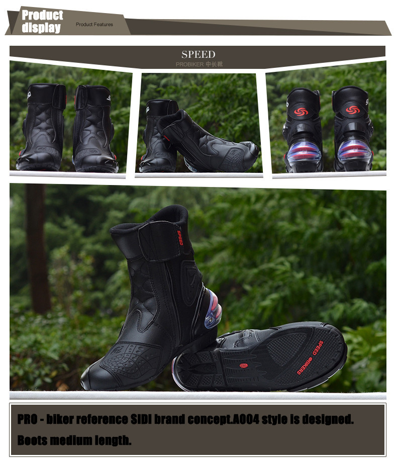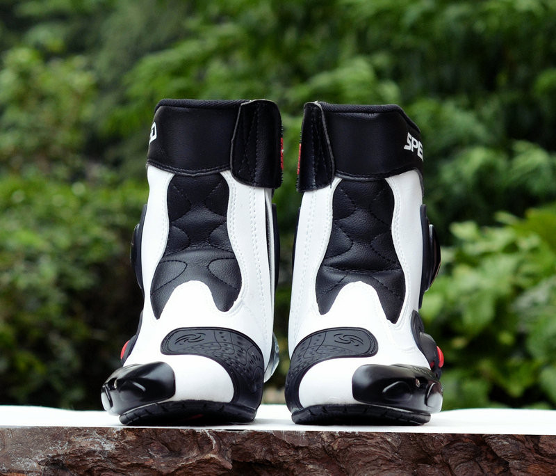 Men Motorcycle Boots PU Leather Motorsport Riding Racing Boots Motocross MX Shoes Motorbike Bike SPEED Protective Gear